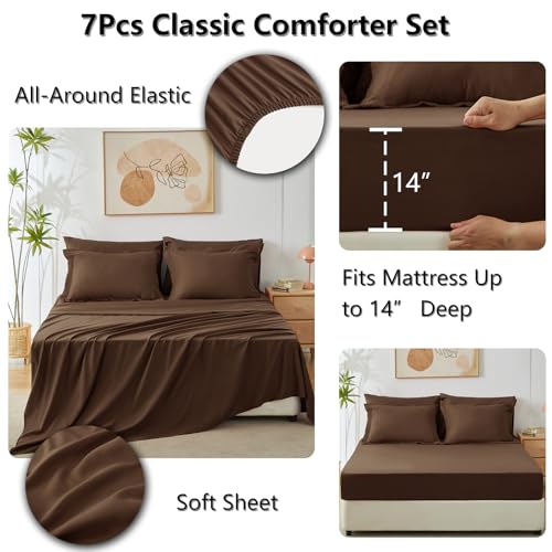 CozyLux Queen Comforter Set Brown – Bed in a Bag Queen Size 7 Pieces, Luxury Soft Bed Set for All Seasons, Bedding Set with Down Alternative Comforter, Sheets, Pillowcases & Shams