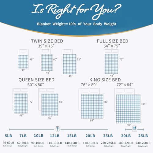 Really helpful Weight Siz: For example, 60×80 inches weighted blanket 20 lbs is suitable for adults, This weighted blanket is much smaller than an bizarre blanket, Please refer to our size chart to make a choice
