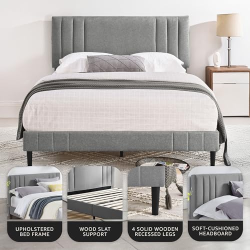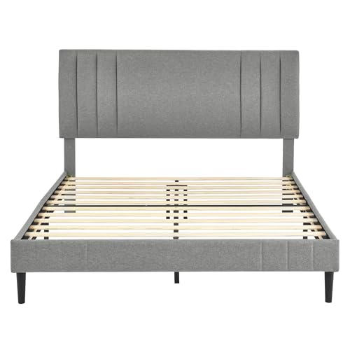 Ultimate Comfort and Support: Enjoy unmatched support with this upholstered platform bed frame featuring a durable wood slat foundation and sturdy center support, no box spring is needed