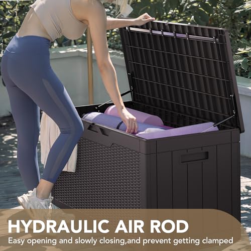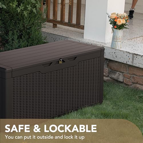 Devoko 100 Gallon Waterproof Large Resin Deck Box Indoor Outdoor Lockable Storage Container for Patio Furniture Cushions Garden Tools (100 Gallon, Dark Brown)