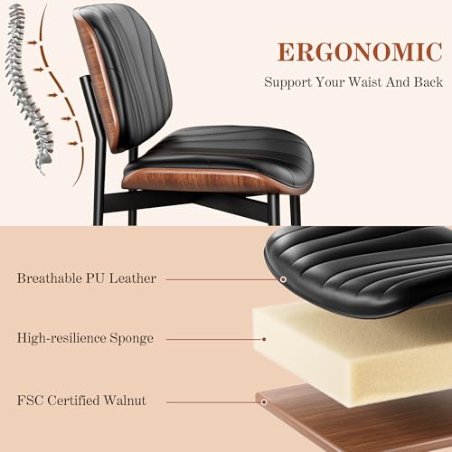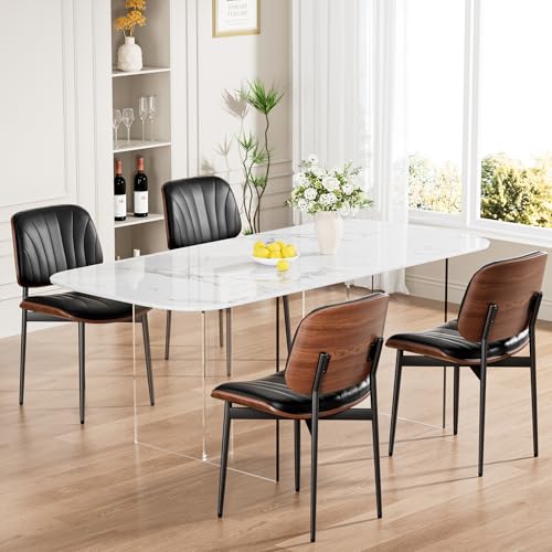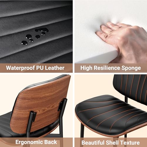 Specification: Dining Chairs Set of 4, Mid-Century Modern Upholstered PU Leather Chairs with Walnut Bentwood Back and Metal Legs Adjustable Feet for Kitchen Dining Room, Black Shell Strips