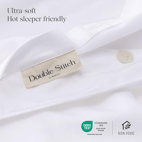 Double Stitch Cotton Tencel Duvet Cover – King Size Comforter Cover, Luxury & Soft Eucalyptus Lyocell Bedding Set for Hot Sleepers, Cooling & Breathable, Button Closure, Bright White, 106″x90″