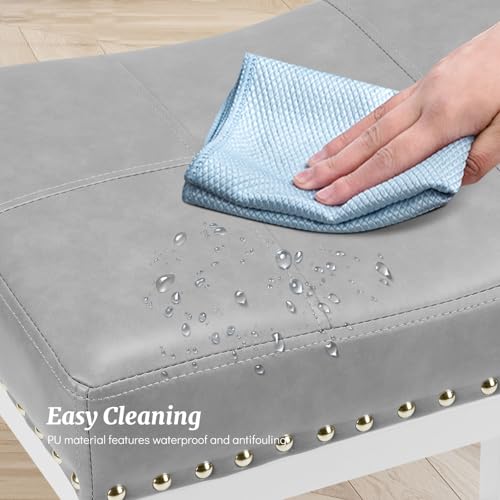 DUMOS Saddle Bar Stools Set of 4, 24 Inch Counter Height Stools with Curved PU Leather Surface, 3.7″ Thick Upholstery Bar Height Stools with Footrest for Kitchen Island, Dining, Cafe, Gray