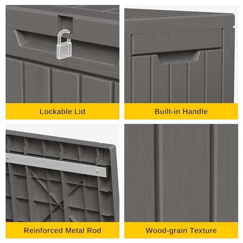 Specification: EAST OAK Outdoor Storage Box, 60 Gallon Deck Box Indoor and Outdoor Use, Waterproof Resin Storage Bin for Patio Cushions, Gardening Tools, Lockable, UV Resistant, Grey