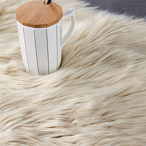 EasyJoy Ultra Soft Fluffy/Fuzzy Shaggy Area Rug Faux Fur Chair Cover Seat Pad for Bedroom Floor Sofa Living Room (2 x 6 ft Sheepskin, Beige)
