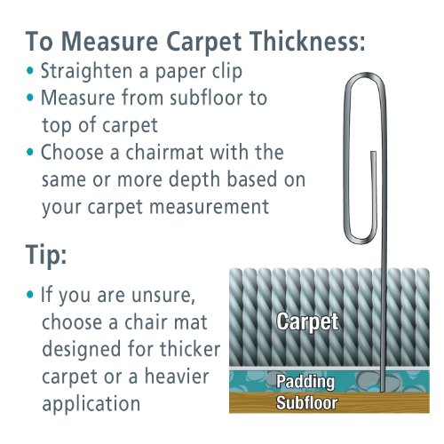 Protects medium pile carpet up 3/4″ thick (including padding) from caster damage and spills.