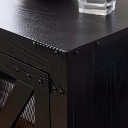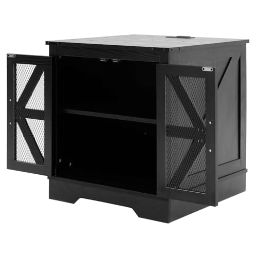 Specification: Farmhouse Nightstand with Charging Station Set of 2, Side Table with Barn Door and Storage, Rustic Wood Bedside Table, End Table for Living Room and Bedroom, Black