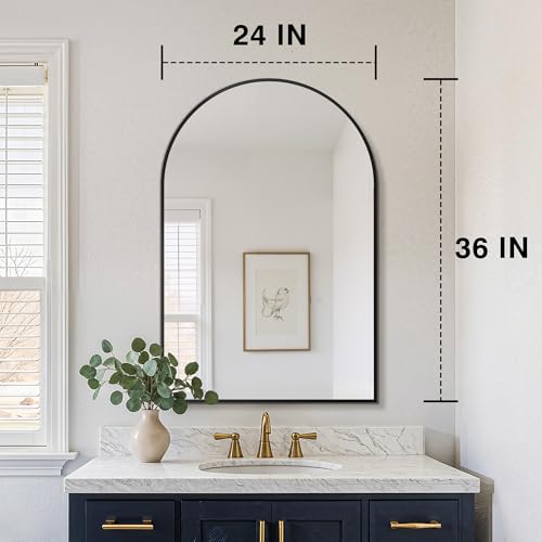 Specification: FICTOR Bathroom Mirror for Wall,2 Pack 24”x36” Arched Vanity Bathroom Mirror for Over Sink, Metal Framed with HD Shatter-Proof Glass for Entryway, Living Room,Bedroom(Black)