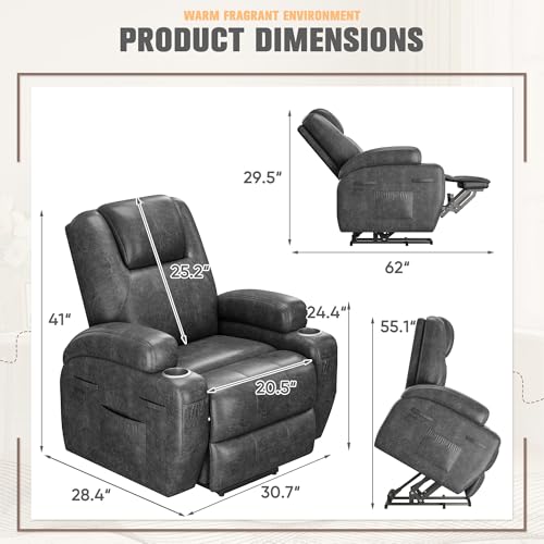 Specification: Flamaker Power Lift Recliner Chair Electric Lift Recliner for Elderly Power Lift Recliner Chair with Cup Holders Side Pockets for Living Room (Leathaire, Light Black)