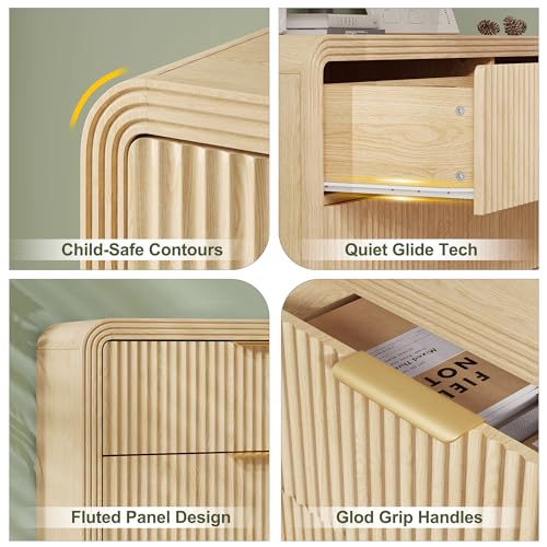 Modern Fluted Design: Our Fluted dresser features a sophisticated fluted panel design with sleek curved edges, blending modern minimalism with warm wood tones; The waveform drawer front adds subtle texture, creating an elegant focal point for bedrooms, living rooms, or home offices