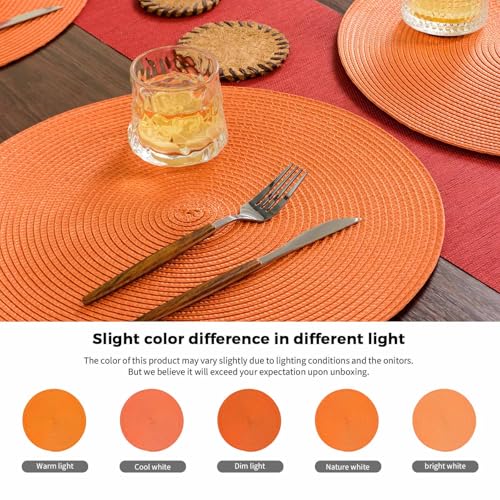 FunWheat Round Braided Placemats Set of 6 Table Mats for Dining Tables Woven Washable Non-Slip Place mats 15 inch(Orange, 6pcs)