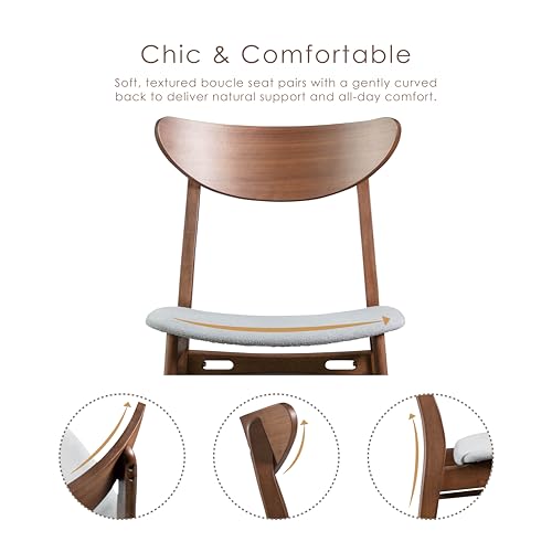 ✨MID-CENTURY MODERN CHARM: Wrapped in fluffy boucle fabric and crafted from warm walnut brown wood, our dining room chair blends timeless MCM-style curves with plush comfort—an inviting touch for dining, kitchen, or cozy corners.