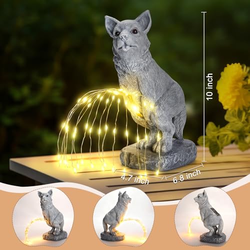 Garden Statues Dog Statue with Solar LED Light, Ideal Gifts for Friends or Family’s Birthday, Outdoor Decorations for Yard