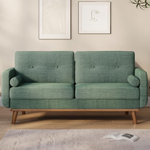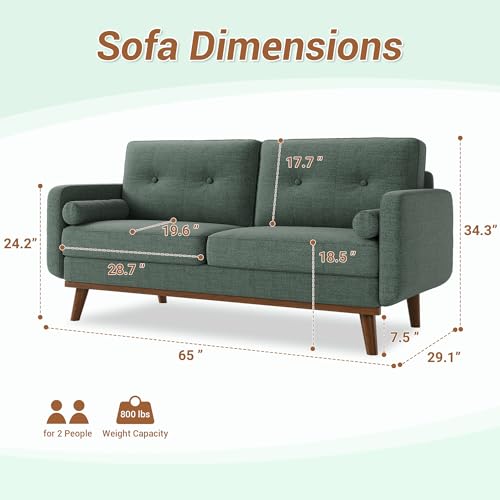 Specification: GarveeHome 65 in Loveseat Sofa, Mid Century Modern Couch Comfy Love Seat Couches for Living Room, 2 Seater Deep Seat Couch Linen Upholstered Couches for Bedroom Office Small Space, Green
