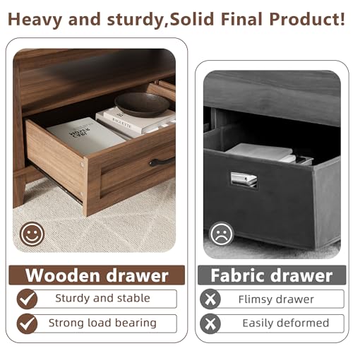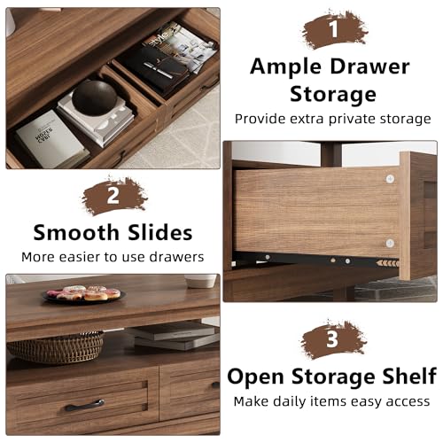 Specification: GarveeHome Farmhouse Coffee Table with Drawers, 47.2 in Center Table Rustic Coffee Tables Walnut Center Table with Open Shelf, 6 Support Legs
