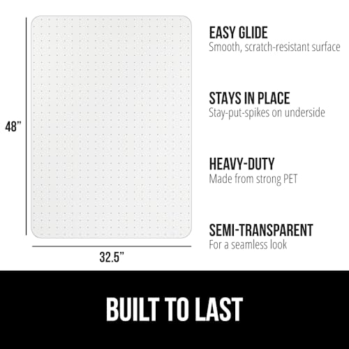 Specification: GORILLA GRIP Slip Resistant Office Chair Mat for Carpet Floors, Smooth Glide Under Desk Carpeted Floor Protector, Heavy Duty Plastic Computer Mats for Rolling Work and Gaming Chairs 32.5×48, Clear