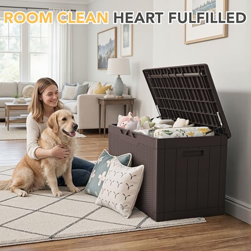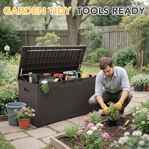 Specification: Greesum 100 Gallon Resin Deck Box Lockable Large Outdoor Storage Boxes for Garden Tools, Patio Furniture Cushions, Pool Supplies, Dark Brown