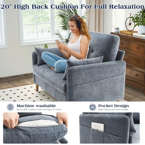 【6.5 Inch Comfy Seat Cushion and High Backrest】This small loveseat features a soft, high-density sponge that offers an exceptional seating experience. The 20 inch tufted back cushion provides excellent toughen for your back and waist. Whether you are watching tv, reading, or engaging in conversation with circle of relatives, this small couch ensures the ultimate comfort experience.