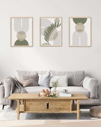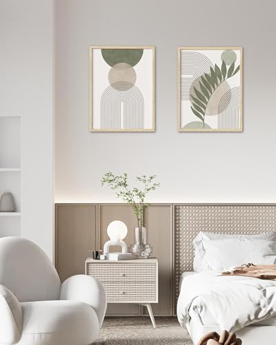 Specification: HesenDot 12x16in Boho Framed Wall Art – Sage Green Botanical Print with Geometric Lines,Minimalist Abstract Wall Decor for Living Room Bedroom Office,Modern Nature-Inspired Canvas Poster,Set of 1