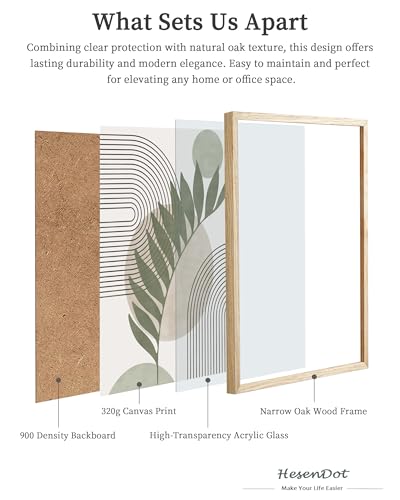 Solid OAK Frame: Crafted from natural oak wood, the frame offers durability and a warm, timeless finish. Includes acrylic glass to lend a hand give protection to the boho canvas print from dust and dirt