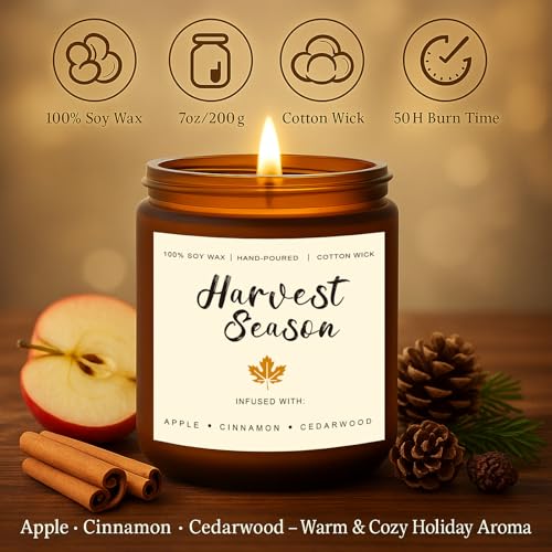 Warm Holiday Fragrance: Indulge in cozy aromas that define the season—Cinnamon & Pumpkin, Apple Vanilla, Orange Jasmine Coconut, and Cedarwood Spice. Long lasting soy candles perfect for fall, Thanksgiving, and Christmas.
