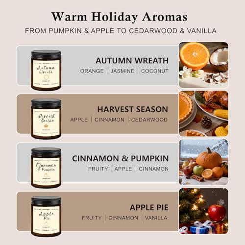 Specification: Holiday Candle Gift Set – Cinnamon Pumpkin, Apple Vanilla, Orange Jasmine Coconut, Cedarwood Spice – Long Lasting Soy Candles for Home, Thanksgiving & Christmas Gifts for Women