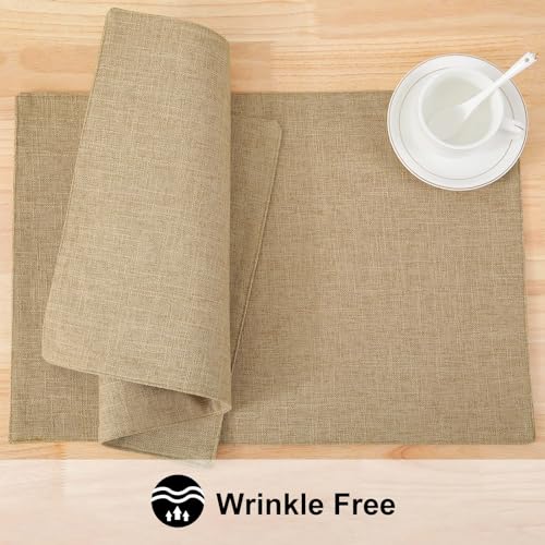 homing Cotton Linen Placemats Set of 6, Cloth Washable Farmhouse Dining Table Mats for Indoors & Outdoors, Easy to Clean, Linen, 13 x 19 Inch