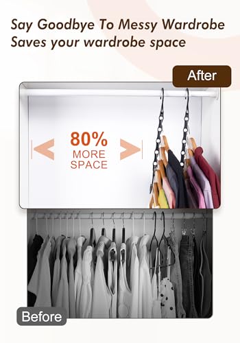 Space Saving Clothes Hangers – The scientific design of the closet organization makes full use of the space, saves 80% of the space of the wardrobe, and makes your wardrobe look very neat. The usage of hangers space saving means that you can store your clothes quite, avoid folds caused by folding, and make it more convenient to take, saving time for your trip. The multi-functional magic storage hanger is a good helper for saving space in your wardrobe!