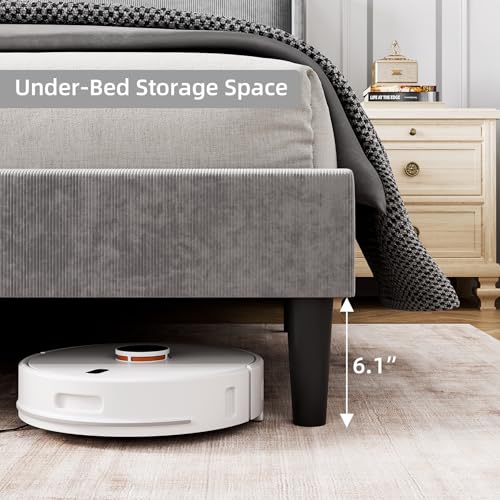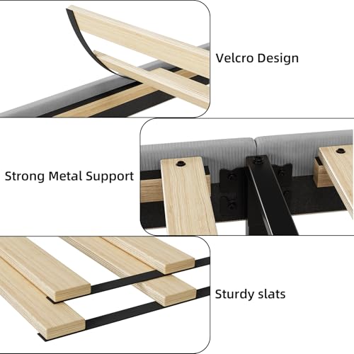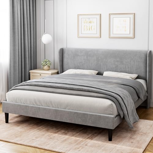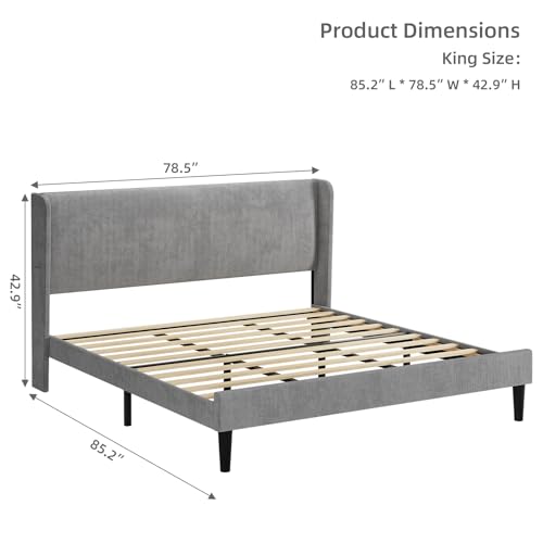Specification: IDEALHOUSE King Upholstered Bed Frame with Wingback Headboard, Luxurious Velvet Upholstery Platform Bed, Wooden Slat Support, and Easy Assembly – Box Spring Optional, Light Gray