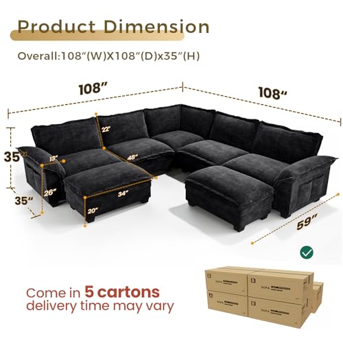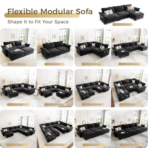 Specification: KKL Modular Sectional Sofa, Large V Shape 7 Seater Modern Sectional Couch with Ottoman, Couches for Living Room, Cloud Couches Chenille for Apartment, Home, Black