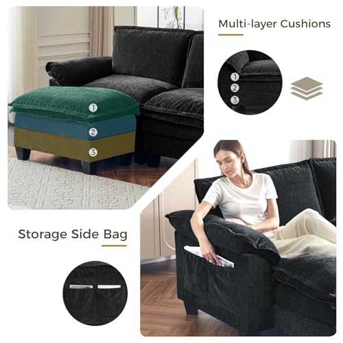 Comfy Sectional Couch: The couches for living room feature 34-inch wide seats, a 20-inch seat height, 24-inch sectional with double-layer cushions, and a 22-inch high back cushion, offering a comfortable lounging experience