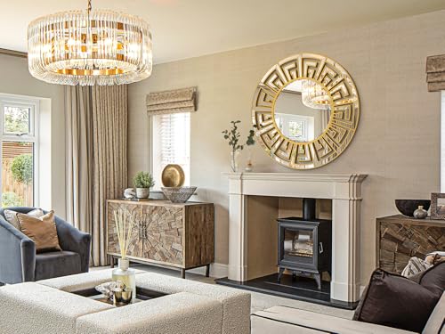Specification: Large 35.5″x35.5″ Round Mirrors for Wall Decor with Gold Geometric Pattern, Beveled Edge, Gold Decorative Mirror for Retro Living Room, Stylish Entryway, Bedroom and Bathroom