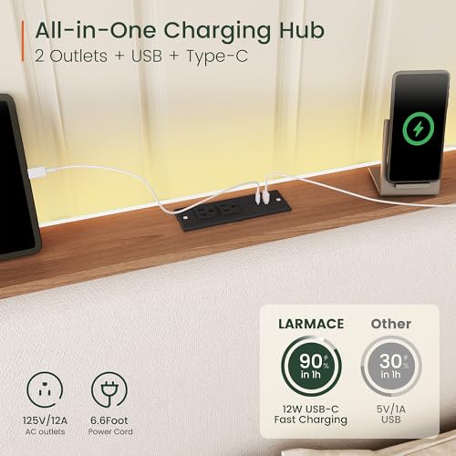 【Bed Frame with Charging Station】 Charge conveniently without leaving your bed frame; queen bed frame with headboard features 2 standard outlets, 1 Type-C port, and 1 USB port plug in your phone, tablet, or laptop right from your bedside; Fast-charging capabilities mean your devices are at all times ready when you are