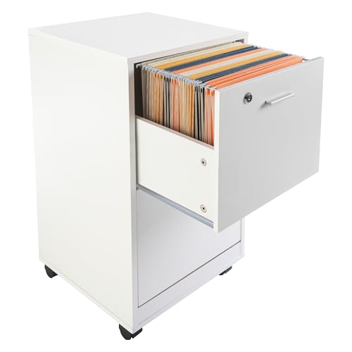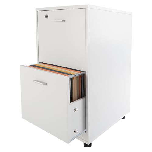 Lavish Home File Cabinet – 2-Drawer Cabinet with Lock and Deep Drawer Storage – Rolling Filing Cabinet for Under The Desk, Home, or Office (White)