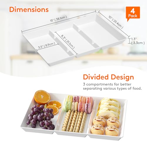 Lifewit Serving Tray Divided for Party Supplies, 4 PCS 15″ x 10″ Plastic Platters for Serving Food, White Reusable Tray for Veggie, Snack, Fruit, Cookies, Desserts in Kitchen/Pantry