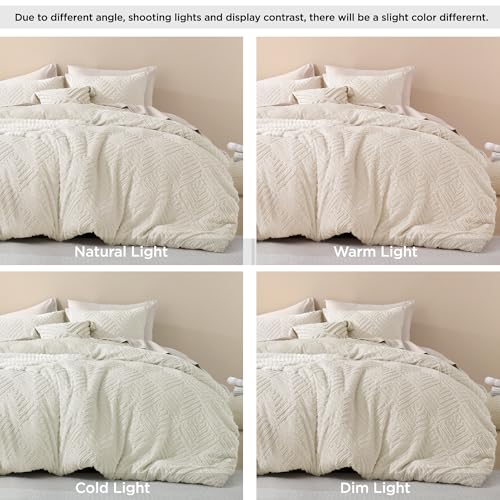 Litanika King Size Comforter Set Beige, 3 Pieces Cream Tufted Boho Farmhouse Bedding Comforter Sets, Lightweight Fluffy Comforter Bed Set for All Season (104x90In Comforter and 2 Pillowcases)