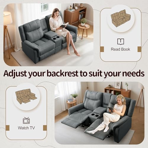 Ergonomic Excellence: This loveseat recliner features an adjustable backrest (90°-155°) – simply pull the tab inside the armrest to release the footrest to adjust the backrest. The thickened head and thickened back pillows provide cozy support for reading, TV watching, or napping, cradling your neck, back, and lumbar in perfect comfort. Its smooth tilt mechanism follows the natural curve of your spine, delivering ergonomic support in both upright and reclined positions.