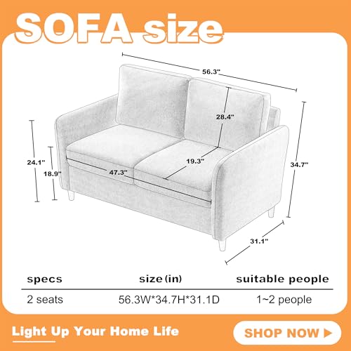 Specification: Loveseat Sofa Couch with Storage Small Couches for Small Spaces Comfy Love Seats for Living Room 2 Seater Sofa for Bedroom(Light Grey, 2-Seat)