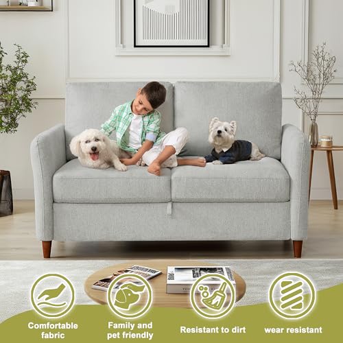 Loveseat Sofa Couch with Storage Small Couches for Small Spaces Comfy Love Seats for Living Room 2 Seater Sofa for Bedroom(Light Grey, 2-Seat)