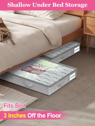 Low Profile Under Bed Storage, 3 Inches High Underbed Storage Containers Bins, NO STRUCTURE, Foldable Clothes Storage and Organizer with Lid & Zipper, Shallow Storage for Low Bed Couch Crib, 2-Pack