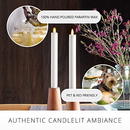Luminara Set of 2 Moving Flame LED Taper (1×9.75), Flameless Candle, Melted Edge, Smooth Wax, Unscented (White)