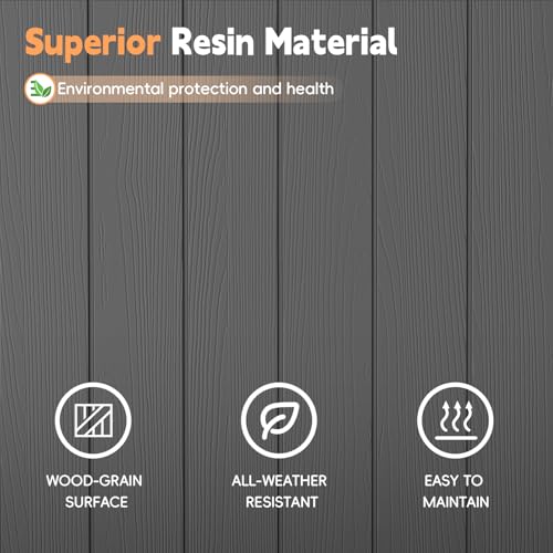 Waterproof and UV Protection: The waterproof resin material provides weatherproof and UV protection, making it a perfect storage solution for garden tools and patio furniture. It ensures durability and reliability, even in harsh weather conditions