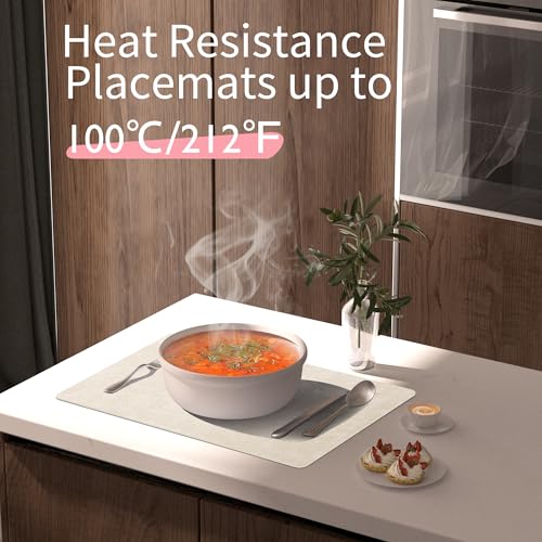 HEAT RESISTANCE – UP TO 212 °F (100 °C): These quality dining table place mats are with 2mm thickness to protect your dining table from white heat marks. Each is sealed with a durable coating that is both stain and heat resistant to 212 °F