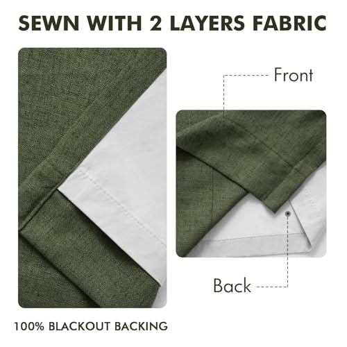 Specification: MIULEE Olive Green Pinch Pleated 100% Blackout Linen Curtains for Bedroom, Room Darkening Dark Green Window Curtains 84 inches Long for Living Room, Black Out Pleat Drapes with Pin Hooks, 2 Panels