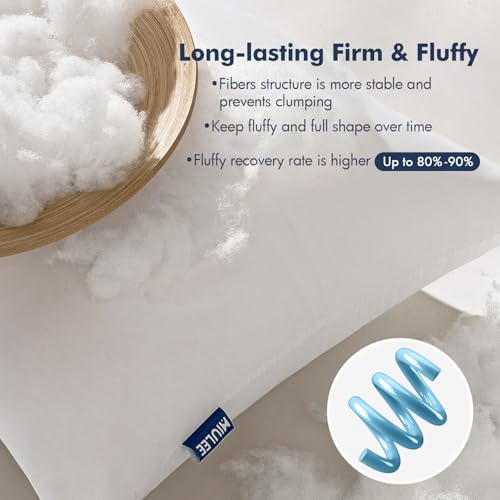 MIULEE Throw Pillows Inserts, Pack of 2 18×18 Inch 100% Virgin Fiber Filling Bed Couch Pillows