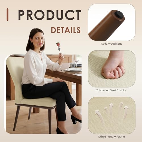 Specification: Modern Dining Chairs Set of 4, Upholstered Kitchen Chairs with High Back, Padded Fabric Dining Room Chair with Solid Wood Legs for Restaurant/Cafe/Home, Beige