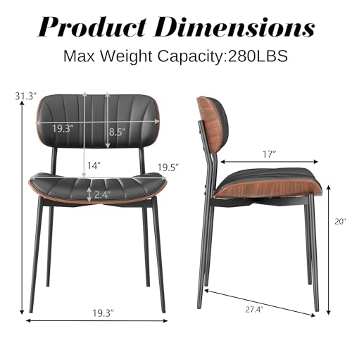 Specification: Modern PU Leather Dining Room Chairs Set of 6, Upholstered Kitchen Chairs with Walnut Bentwood Back and Metal Legs Adjustable Feet for Kitchen Dining Room(Balck)