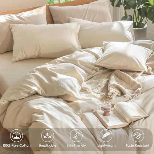 Great Texture & Comfort: Looks like linen, feels like cotton, with a lived-in, slightly wrinkled look, which offers that feeling of staying at a nice resort where the duvet cover sets are always crisp, clean and comfortable. The relaxing look of this almond milk grey bedding set and the cool texture make it hard to get out of bed.