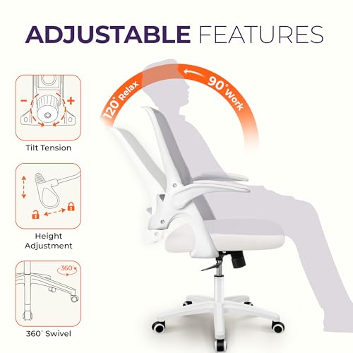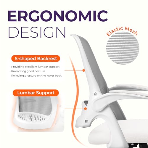 Specification: NEO CHAIR Office Desk Computer Gaming Ergonomic Chair with Lumbar Back Support Adjustable Height Swivel Wheels Flip-up Arms Mesh Chair for Home or Office (Ivory)