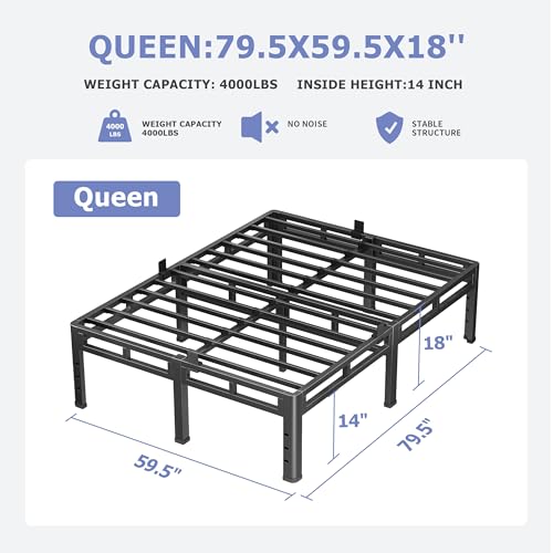 Specification: NKZ 18 Inch Queen Size Bed Frame, Metal Bed Frame & Box Spring 2 in 1 Platform with Round Corner Legs, 4000Lbs Heavy Duty Metal Frame, Mattress Slide Stopper, Headboard Hole, Noise-Free, Easy Assembly